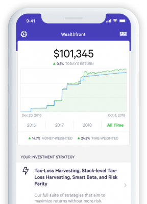 This material has been prepared solely for informational purposes only, and the information provided is as of October 31, 2018. Wealthfront Software LLC offers a software-based financial advice engine that delivers automated financial planning tools to help users achieve better outcomes. This software-based financial planning tool is made available to investment advisory clients of Wealthfront Advisers LLC free of charge, through a contractual arrangement between Wealthfront Advisers LLC and Wealthfront Software LLC.